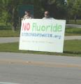 Some of the protesters brought their young children to help hold anti fluoride signs and wave at the passing cars on Pine Island Road in front of the Water Company.
