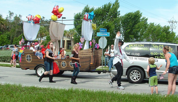 Pine Island/Matlacha and surrounding area residents stakeout their spots along Stringfellow Road starting at Winn Dixie all the way to Pine Island Center. The parade ends at the Elks Lodge Parking lot where they will again be serving drinks and hot dogs.