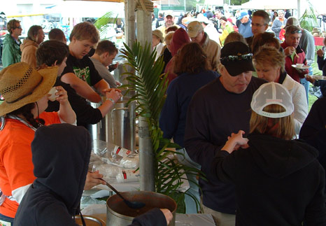 After Vytas Vibe performed to the early crowds, the sound crew set up for Soap Box, this was the first year Soap Box performed at Taste of Pine Island and they were a crowd pleaser. The visitors sat under the large tent in the center of the field, ate some of Pine Island’s best food and enjoyed some kick butt rock and roll. While Soap Box was performing the chowder contestants started cooking their seafood chowder. As in years past all who attend Taste of Pine Island and stayed until 2:30 PM could become judges in the contest. This is the people’s choice; there are no outside judges. It is all about what the people like. As usual the lines started early with nearly everyone staying all day. As in year’s past, long twisting lines of visitors were lined up in front