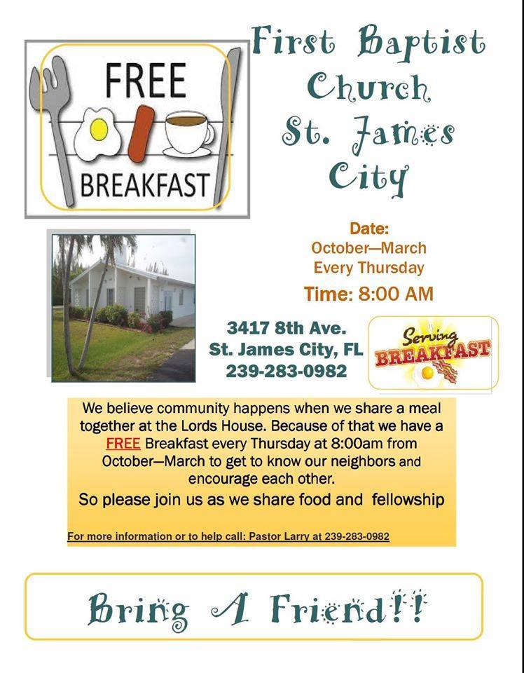 Location: The First Baptist Church of St. James City, 3417 8th Ave., St. James City, Fl 33956