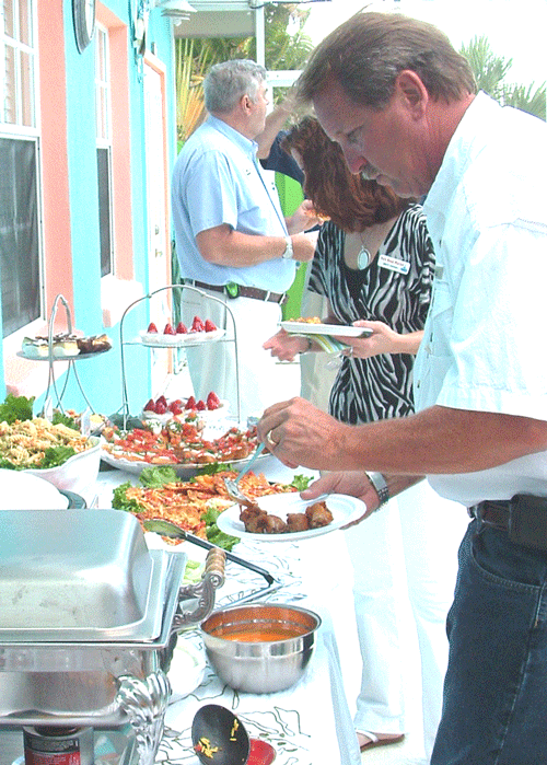 The setting was beautiful food was setup around the pool area and the bar and gazebo overlooked the canal. Great place to stay while on vacation. Tours of the rooms were given to those who wanted to see them. Very nice setting to come and play and enjoy Pine Island life style.