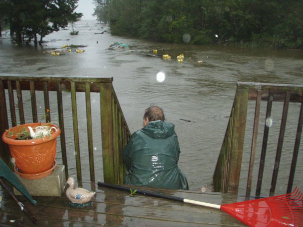 Renee reported at 10:45 AM, “we are still here, we now have 9 ft. of water in our yard.”