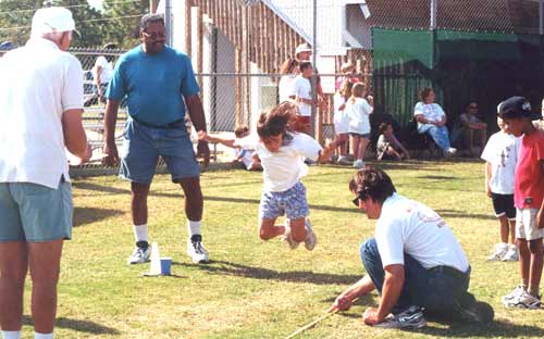The event is for kids kindergarten through 5th grade. Each child competes against children in their own grade and gender. The children will compete in the long jump, 50 yard dash, 1.2 mile run. Frisbee toss and softball throw and so much more. All kids will be given a t shirts. Winners will be presented with trophies, silver dollars, ribbons and a free hot dog lunch.”